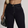 A Calça Skinny Modeladora Azul Escuro é a peça essencial para quem busca um visual moderno e que valoriza a silhueta. Com a modelagem skinny, que se ajusta perfeitamente ao corpo da cintura à barra, esta calça jeans de cós médio é ideal para alongar a figura e combinar com qualquer tipo de calçado, desde tênis casuais até saltos elegantes. A alta concentração de 3% de elastano e a tecnologia LYCRA® garantem uma elevada elasticidade e um caimento que empina o bumbum, proporcionando conforto inigualável e liberdade de movimento para o seu dia a dia.